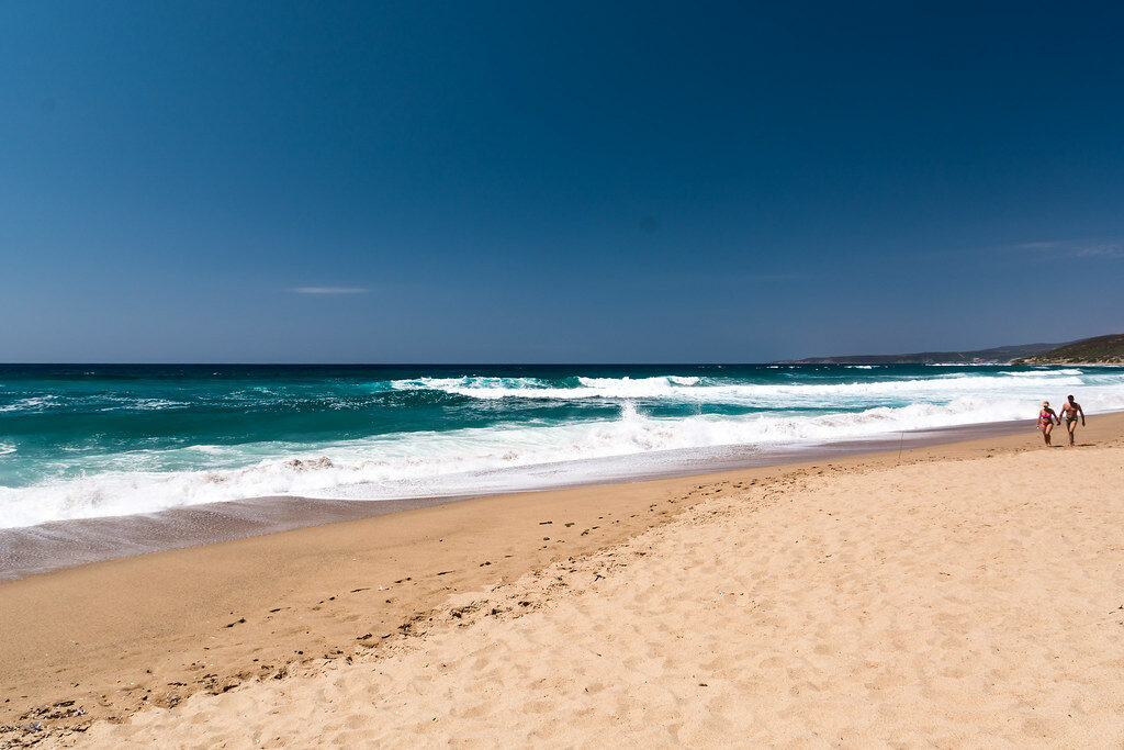 Liscia Ruja, spesso chiamata la Spiaggia Lunga della Costa Smeralda, si estende per quasi un chilometro di sabbia dorata finissima, protetta da profumati cespugli di ginepro. In estate, brulica di bagnanti. In aprile, potreste condividerla con un paio di canoisti e un airone. L’ingresso in acqua è dolce e poco profondo, il che permette al mare di scaldarsi rapidamente, e la baia riparata è spesso abbastanza calma per attraversare la cala in stand-up paddleboard.